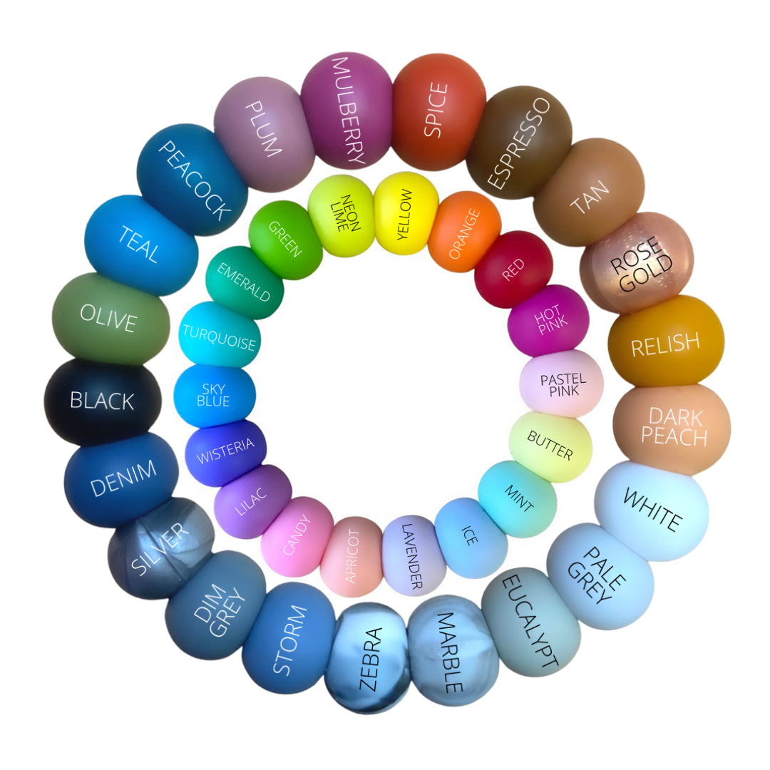 Our BASICS dummy clip features a length of soft, flexible silicone beads - with a small beech feature bead a couple down from the clip!