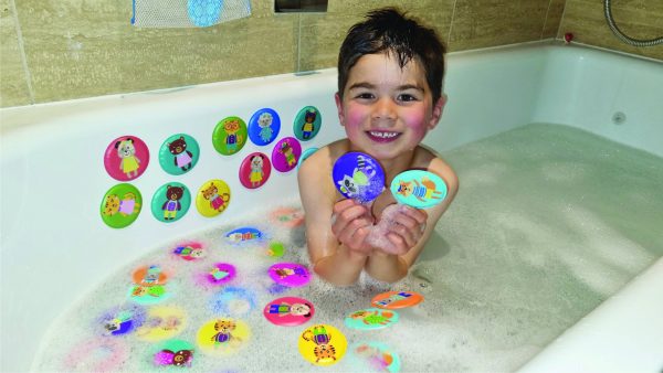 These versatile bath time discs are printed on both sides, float in the bath and also stick to the side of the bath tub or walls. Has 36 pieces in the set and comes with a mesh bag and suction cups for ease of storage for 3+ years.