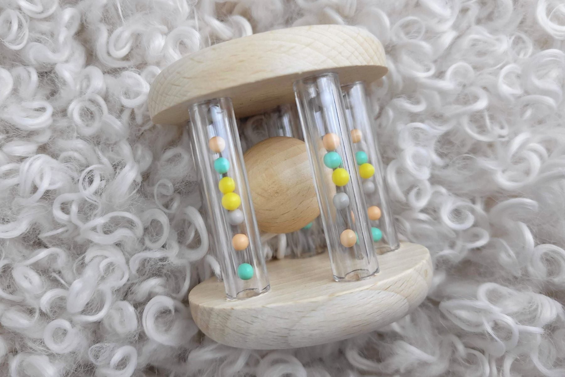 Calm and Breezy Wooden Rattle with Rainbow Bead
