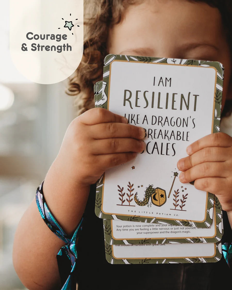 Dragons are fierce and courageous creatures who have extraordinary powers like flying, blending into their surroundings, and controlling nature's elements. Just like dragons, we each possess unique qualities. This potion kit will allow you to discover your own extraordinary abilities, embrace your inner strength, overcome obstacles and find your inner dragon ROAR.