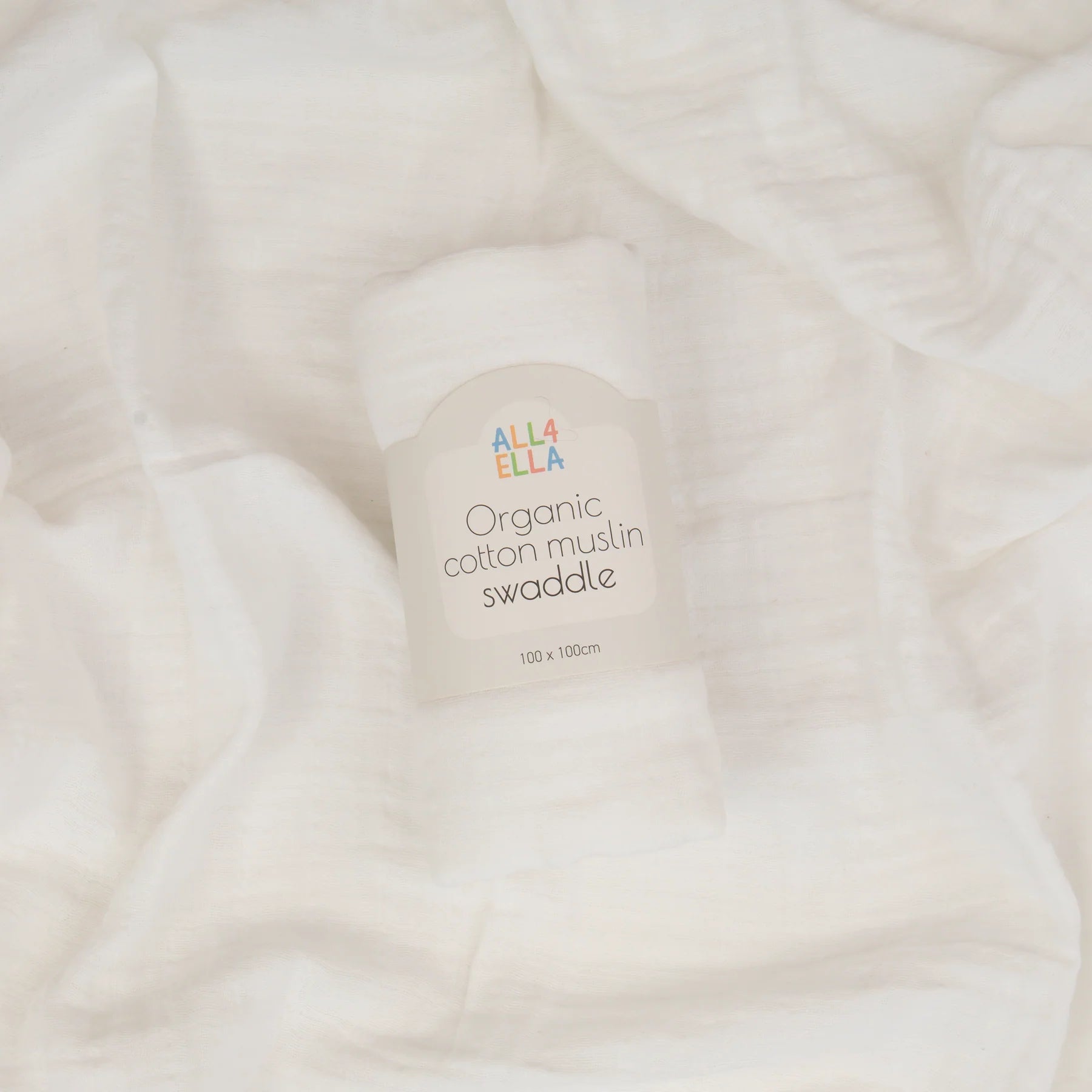 Organic Cotton Muslin Swaddle is made from lightweight, double-layered 100% organic cotton with an open weave design, allowing for constant airflow to help regulate your baby's temperature naturally. As it's washed, the fabric becomes softer, ensuring your baby's comfort with each use. With its generous size, this swaddle serves multiple purposes, from covering the pram to serving as a burp cloth. It's a versatile essential for any parent.