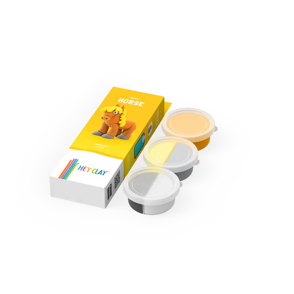 We've invited the most famous animals, turned them into cute characters, and created the HEY CLAY animal world! Introducing Piggy, Horse, Sheep, Cow, brave Doggie, and cunning Rabbit — all beloved by children. Sculpt, play, and fantasize with them!