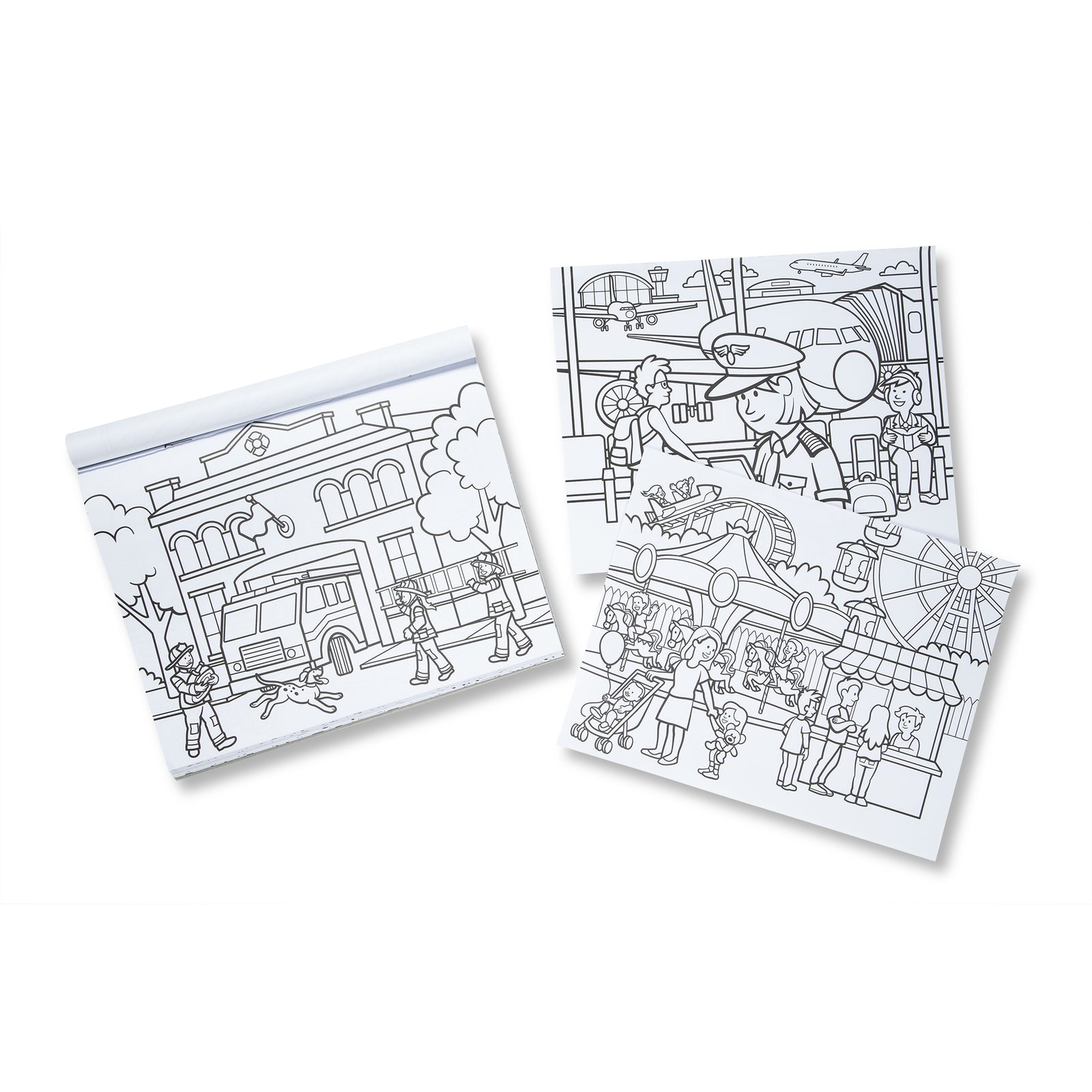 Town people, workers are printed in outline in this oversize drawing pad. The heavy-weight white pages tear out cleanly to allow more than one child to color simultaneously and make proud display easy. Suitable from 4 yrs+