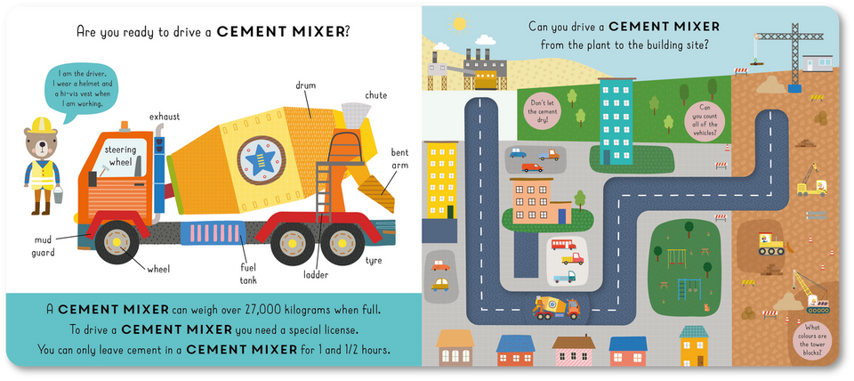 Join the animal friends and transport the different construction vehicles along their routes. Develop your child’s fine motor skills by moving the disks through the channels.