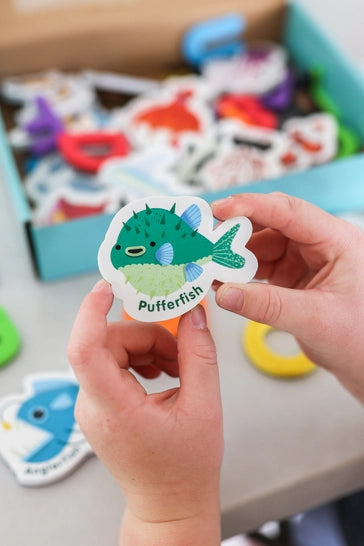 Curious Columbus Sea Creatures & Magnetic Letters are simply 'FINtastic' for your little letter learners. Every sea creature from A through Z has been hand illustrated to bring the underwater world into your home, and includes its name printed next to the picture helping your child to begin their reading journey. Magnets are made from the thickest, chunkiest and most compact foam which means they're toddler chomp proof! They're also durable enough to use them in sensory play setups, including getting them WET! (Just allow them to dry after play.) Mums and dads will love the full rubberised magnetic backing - not only are they super strong, but there’s also no little magnets to risk being lost, or worse swallowed.