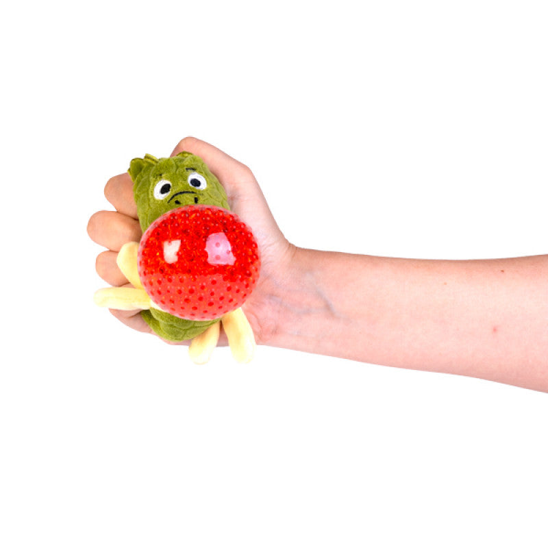 - Soft & fuzzy round plush filled with colourful jellies that pop out with a squeeze!