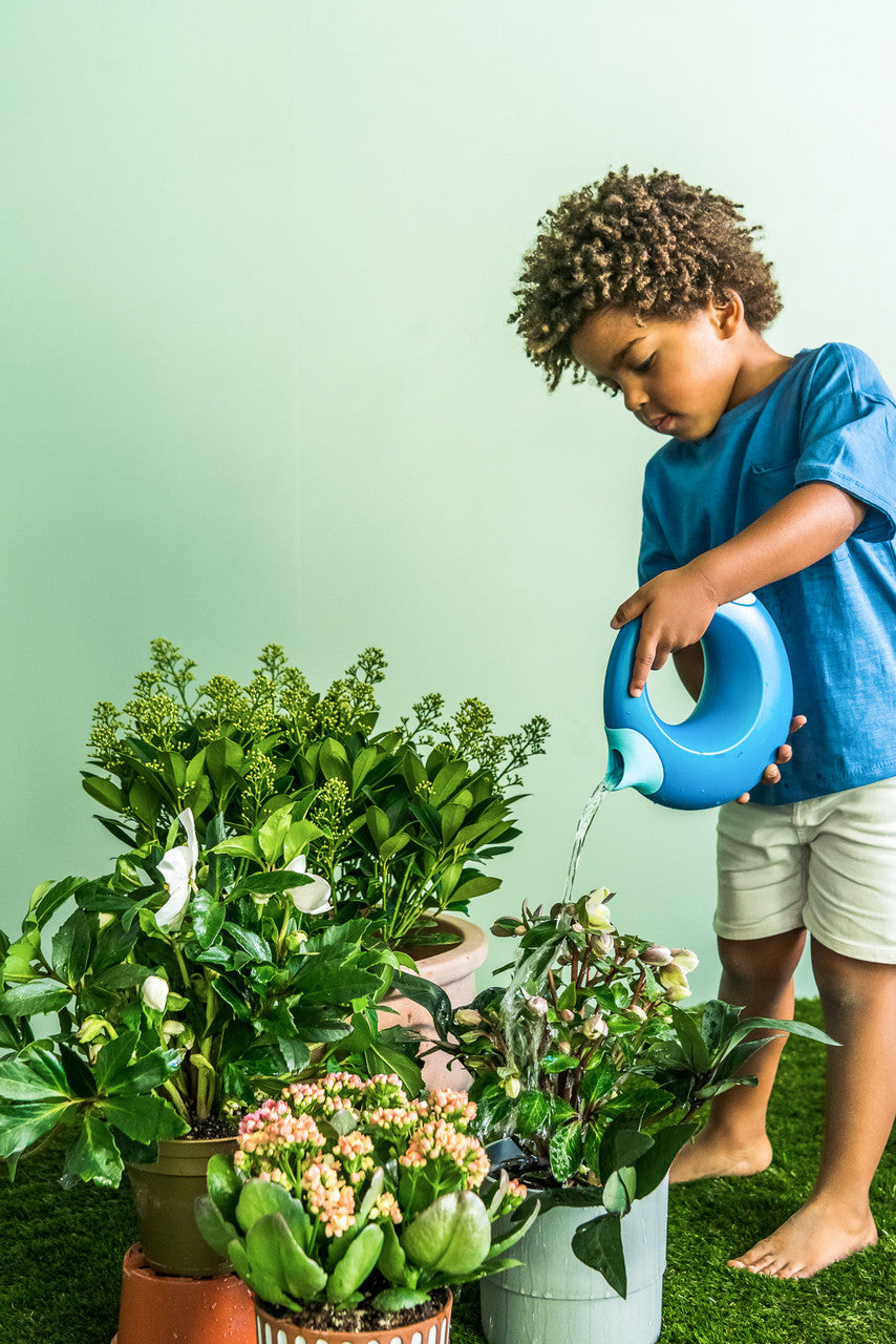 Playful watering can - Cana is a playful watering can with an iconic and innovative design. To be used in your bath tub, at home, on the beach or in the garden. Two different sides double the fun for your kids as they can either spray or pour the water precisely while stimulating fine motor skills.