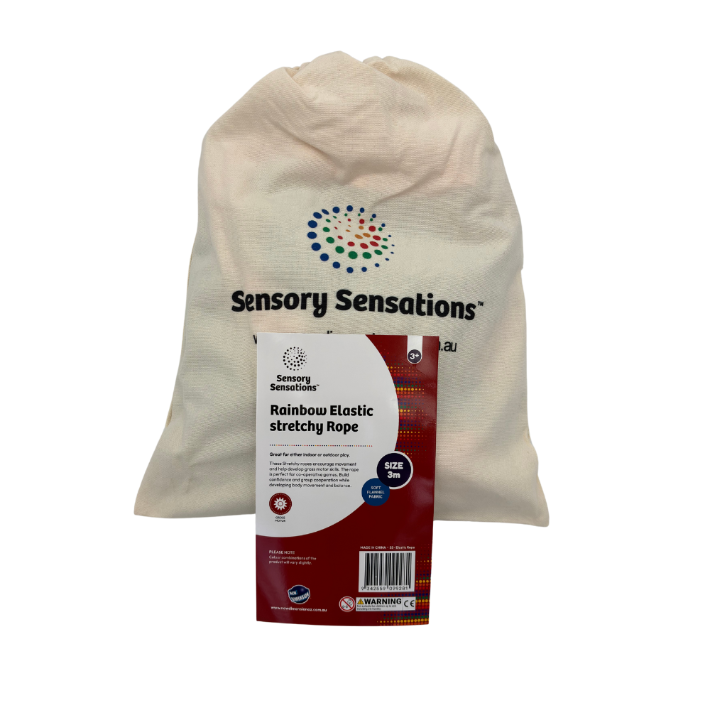 The Rainbow Elastic Stretchy Rope is a fantastic resource for indoor or outdoor play. The rope encourages vestibular input (movement) and proprioceptive input (deep pressure touch), along with developing those all-important fine motor skills. The Stretchy Rope is perfect for co-operative games, physical activity and teamwork games, making it a great tool to support regulation in children. It can help build confidence and group co-operation, while developing body balance and movement.