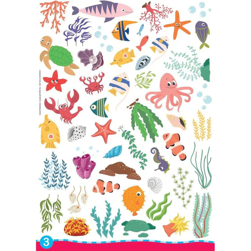 Read the 16-page book and have fun with all the activities inside. 100 stickers, 200 decals, and a special tracing pen to complete and colour the four scenes using your imagination!