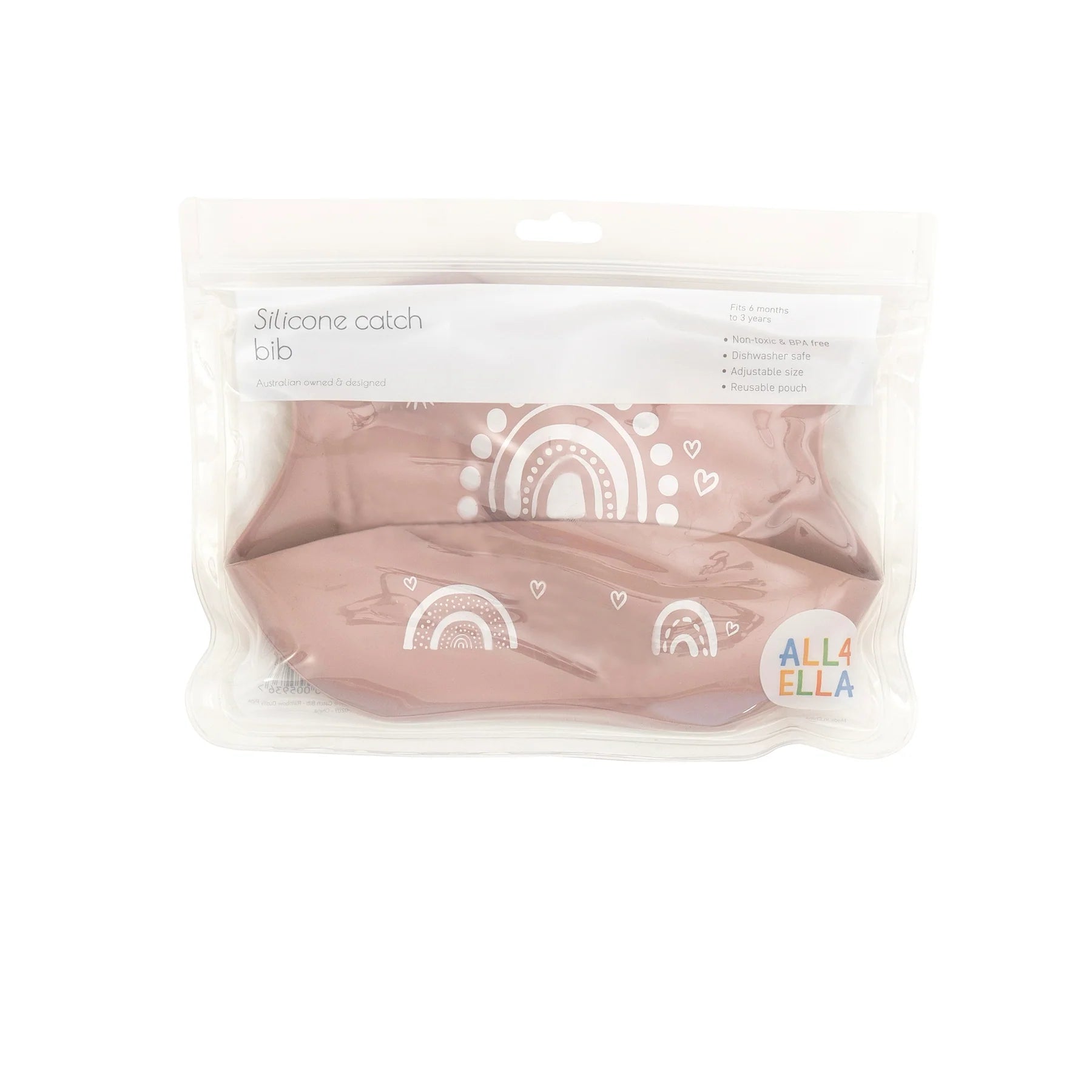 Made from soft, durable food-grade silicone the Rainbow Dusty Pink Silicone Catch Bib features a handy deep spill pocket to catch food and keep mealtimes mess-free. Packaged in a reusable pouch, it's convenient for on-the-go use.