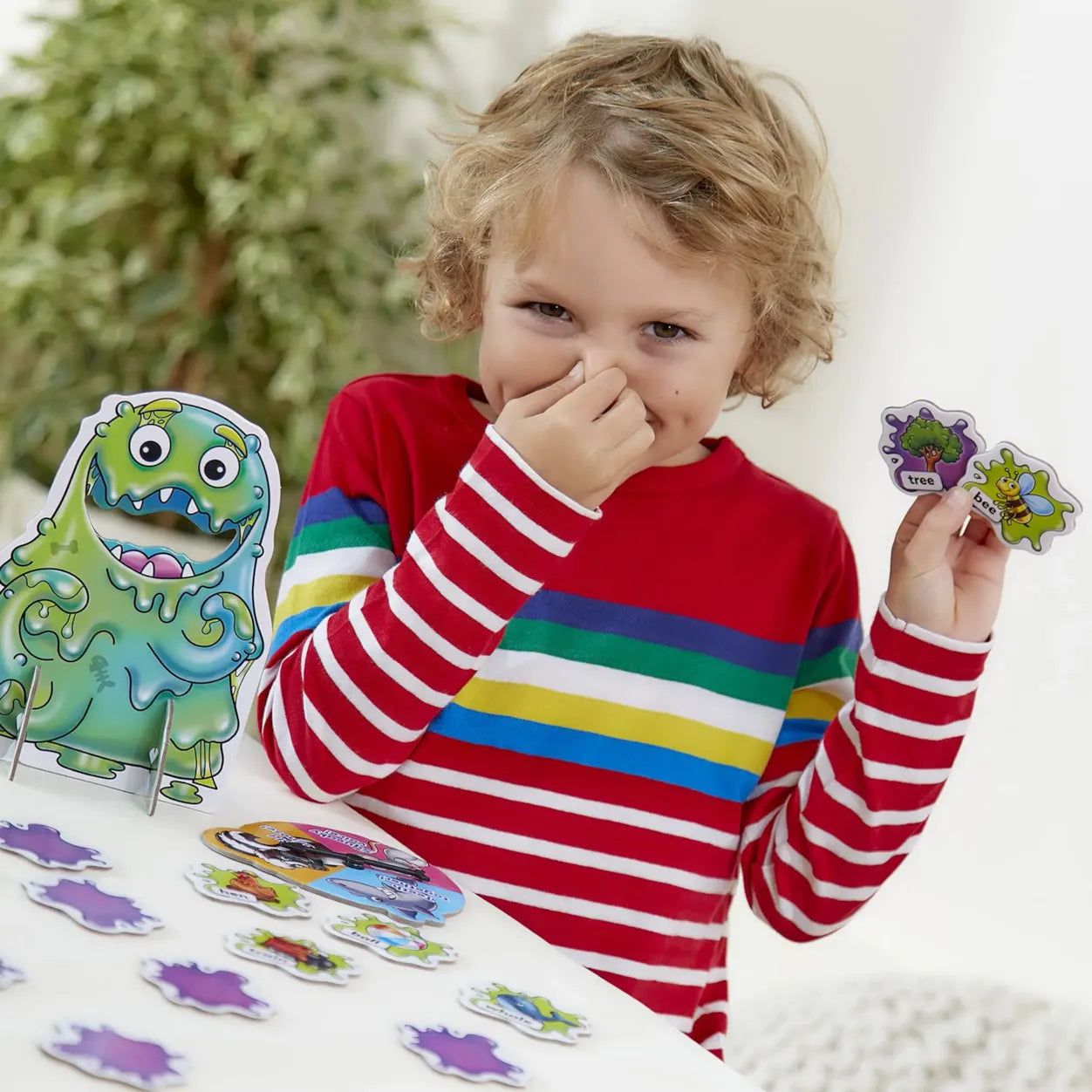 Match rhyming pairs to make silly sentences, then feed them to the slime monster in this fun rhyming game.
