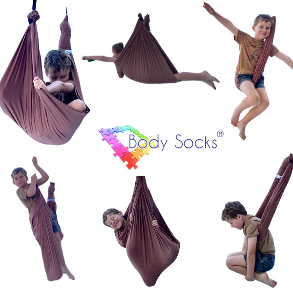 The double layer of lycra allows the individual to cocoon themselves in the swing making it the perfect calming, therapeutic tool to help individuals by providing deep pressure input that helps to calm an over stimulated nervous system.