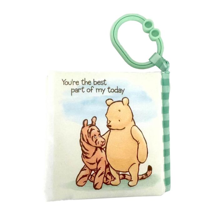 Bring the magic of the Hundred Acre Wood to baby’s everyday adventures with this Soft Book featuring Winnie the Pooh and his friends Tigger, Piglet and Eeyore. With crinkle sounds, a teether corner and a handy on the-go clip to attach to a car seat or pram, this soft book will keep baby stimulated, soothed and entertained all at once!