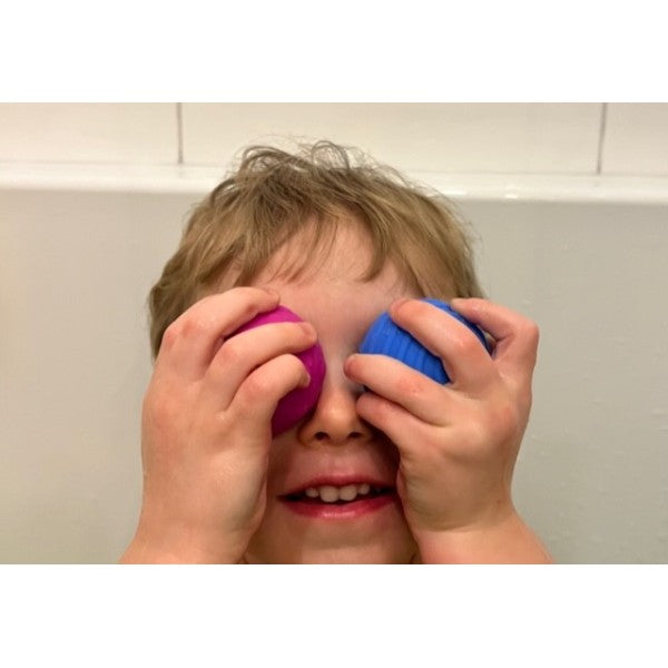 Wooshlz from Mobi's H2O collection. these Sensory Bath shakers are perfect for small hands and make bath time a sensory adventure. 3 fun textures, vibrant colours and 3 different rattling sounds.